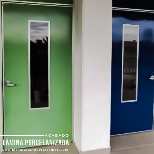 Los materiales recomendados para este tipo de puertas es la Lámina Porcelanizada para uso exterior y para uso interior el Laminado Fenólico.-